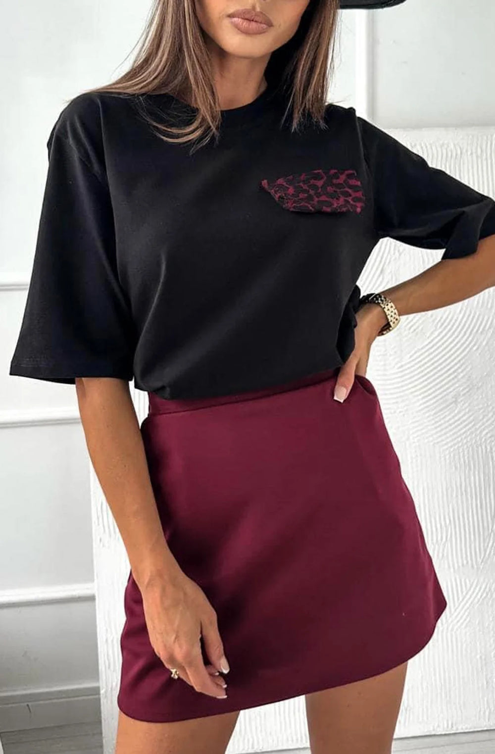 Rock the latest casual day look with this versatile T-shirt top, available in multiple colors! Featuring a classic crew neckline, short sleeves, and a unique single side flap overlay with animal leopard printed detailing (no pockets). Crafted in Italy from a soft and stretchy material of 100% Cotton. This flattering T. shirt top comes in One Size and fits approx. sizes of: One Size (UK 8-14 - fits between size 8 up to size 14) and measures at approximately: 27"(69cm) in length. Don't miss out on this must-have trendy piece!