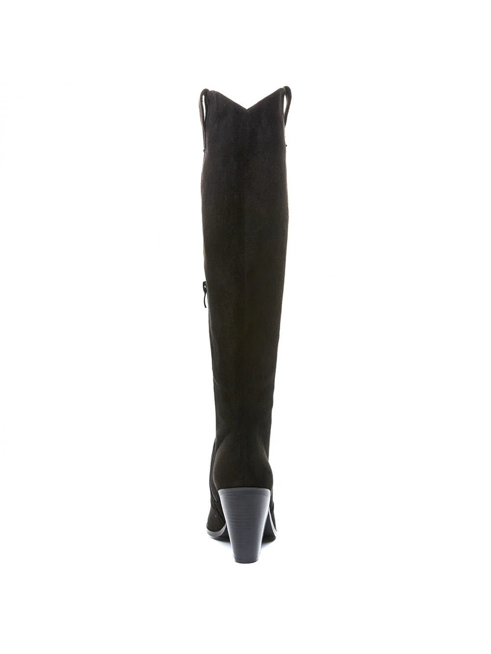 BLACK SUEDE KNEE HIGH WESTERN METAL POINTED HEEL COWBOY BOOTS