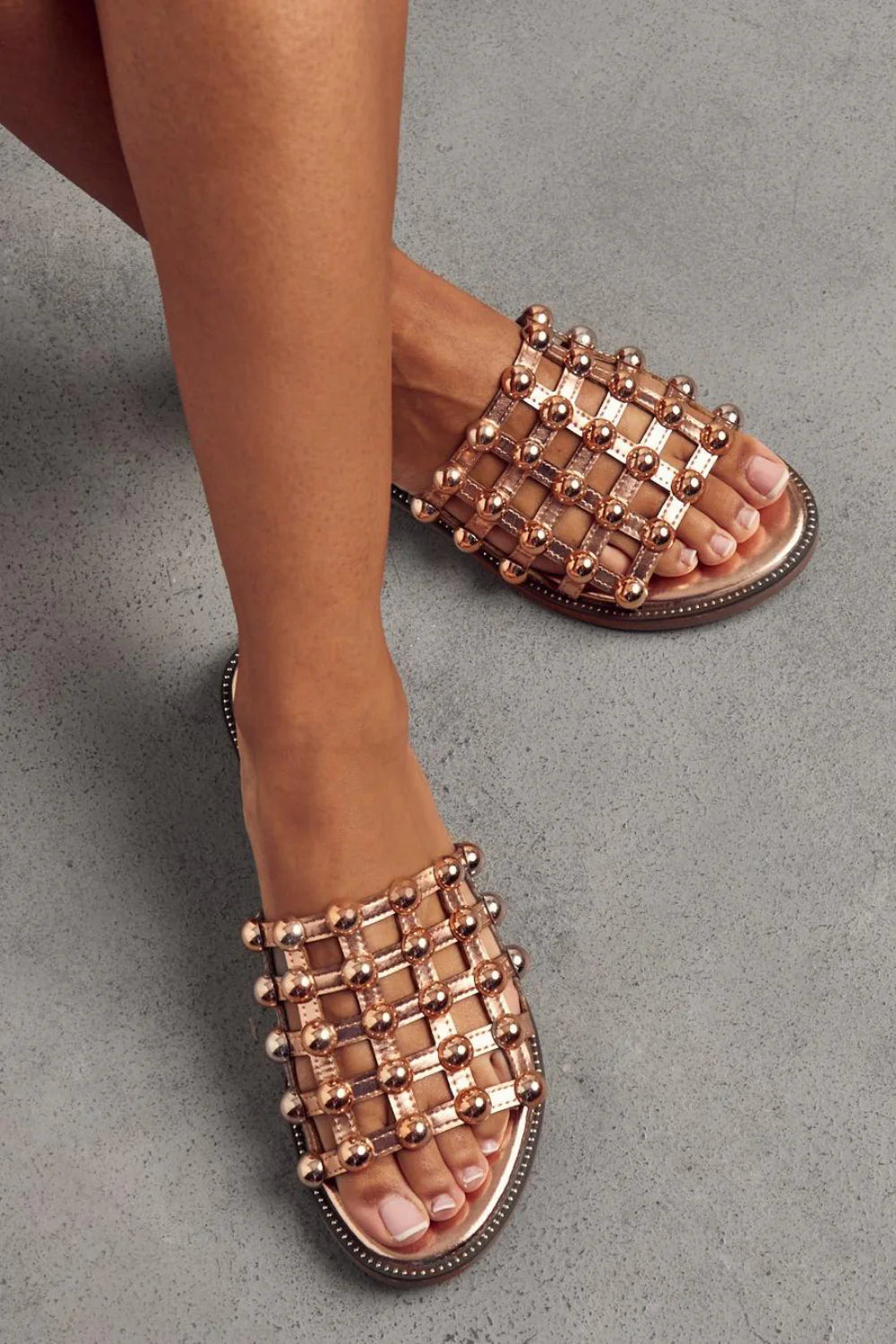 Rose gold Studded Caged Slider Sandals