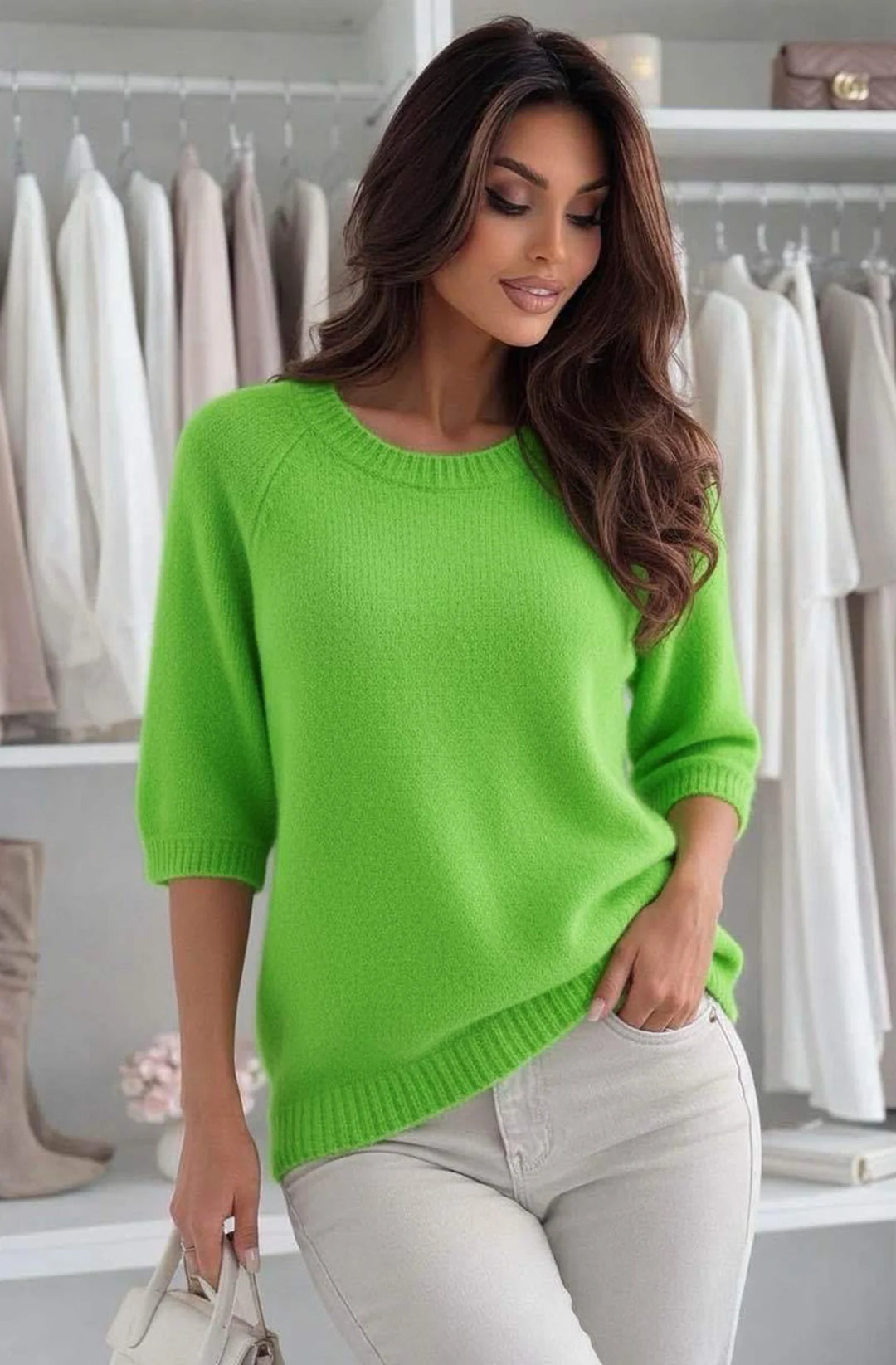 Anira Alpaca Blend Crew Neck Lightweight Jumper Sweater-Green