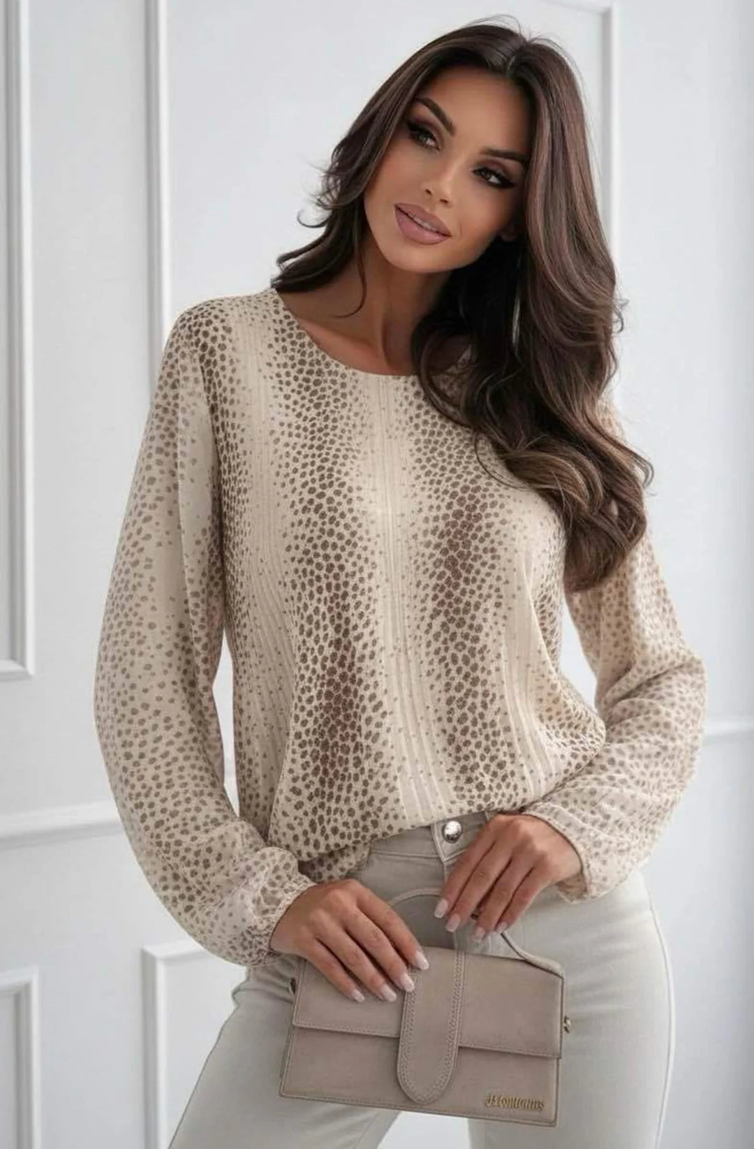 Heidi Abstract Animal-Inspired Print Pleated Blouse Top-Stone