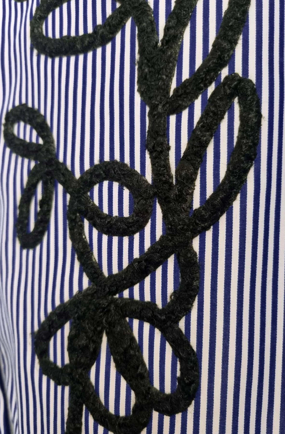 Zella Oversized Abstract Embroidered Stripe High Low Shirt Top- Dark Blue