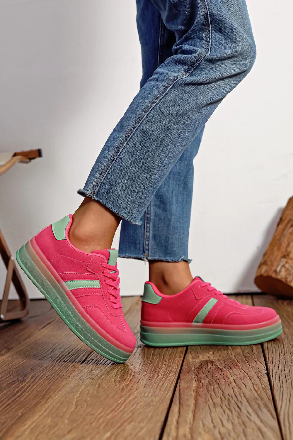 Women's Lace Up Chunky Side Detail Casual Fashion Designer Trainers in Fuchsia