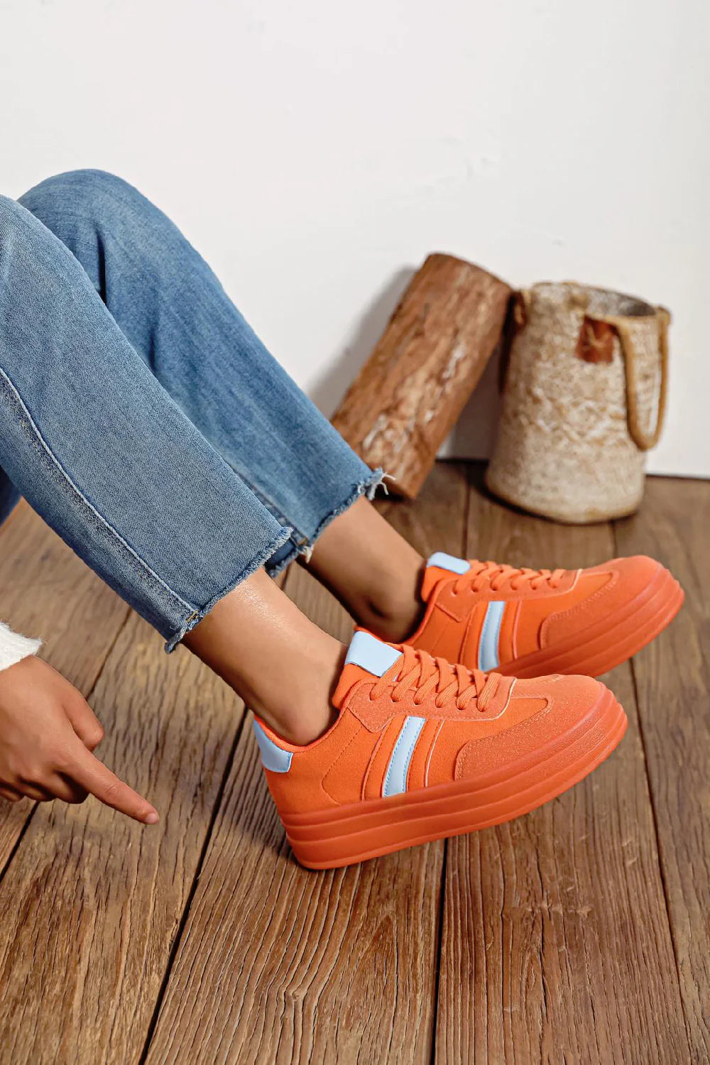 Women's Lace Up Chunky Side Detail Casual Fashion Designer Trainers in Orange