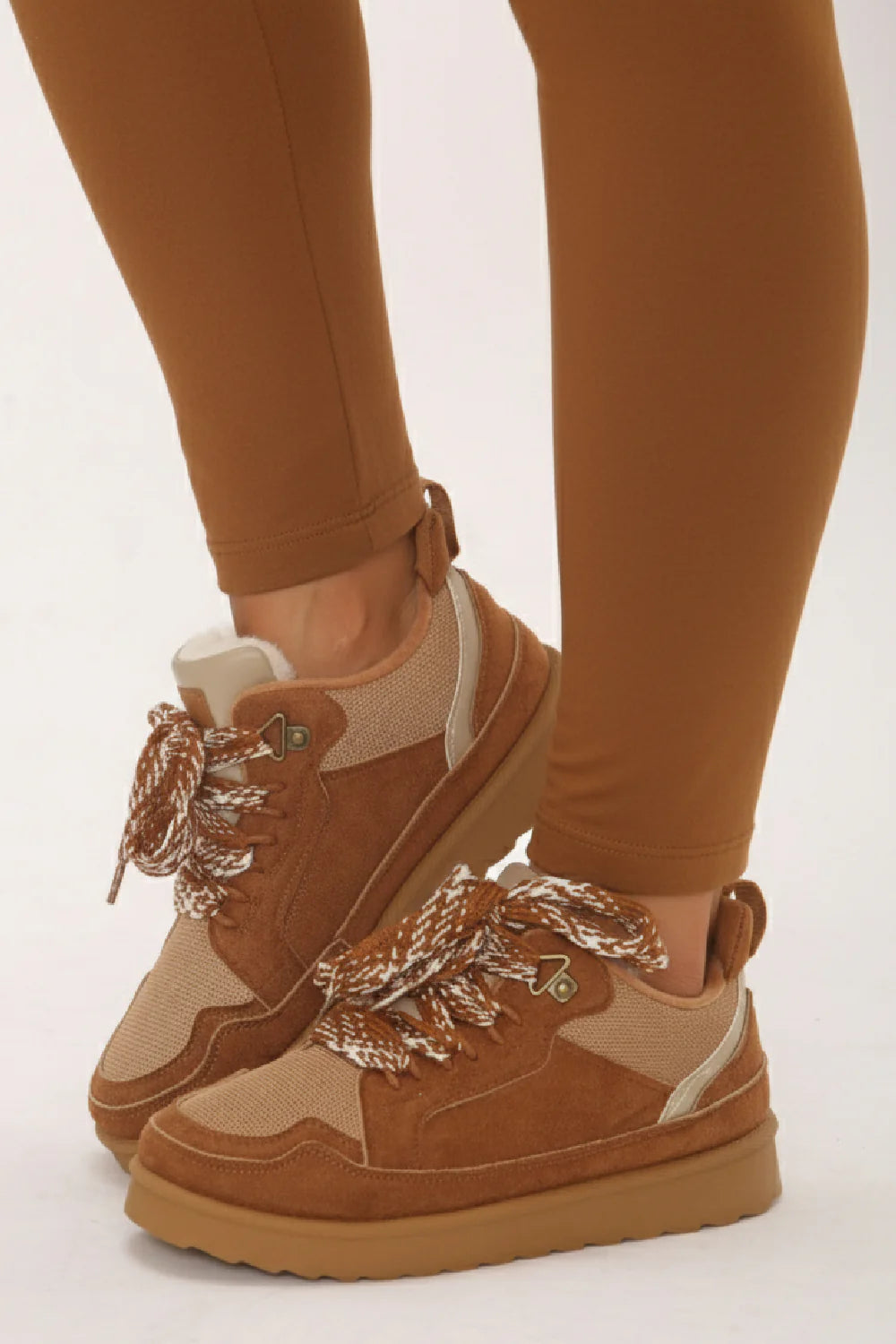 Chestnut Designer Fur Lined Lace-Up Trainers