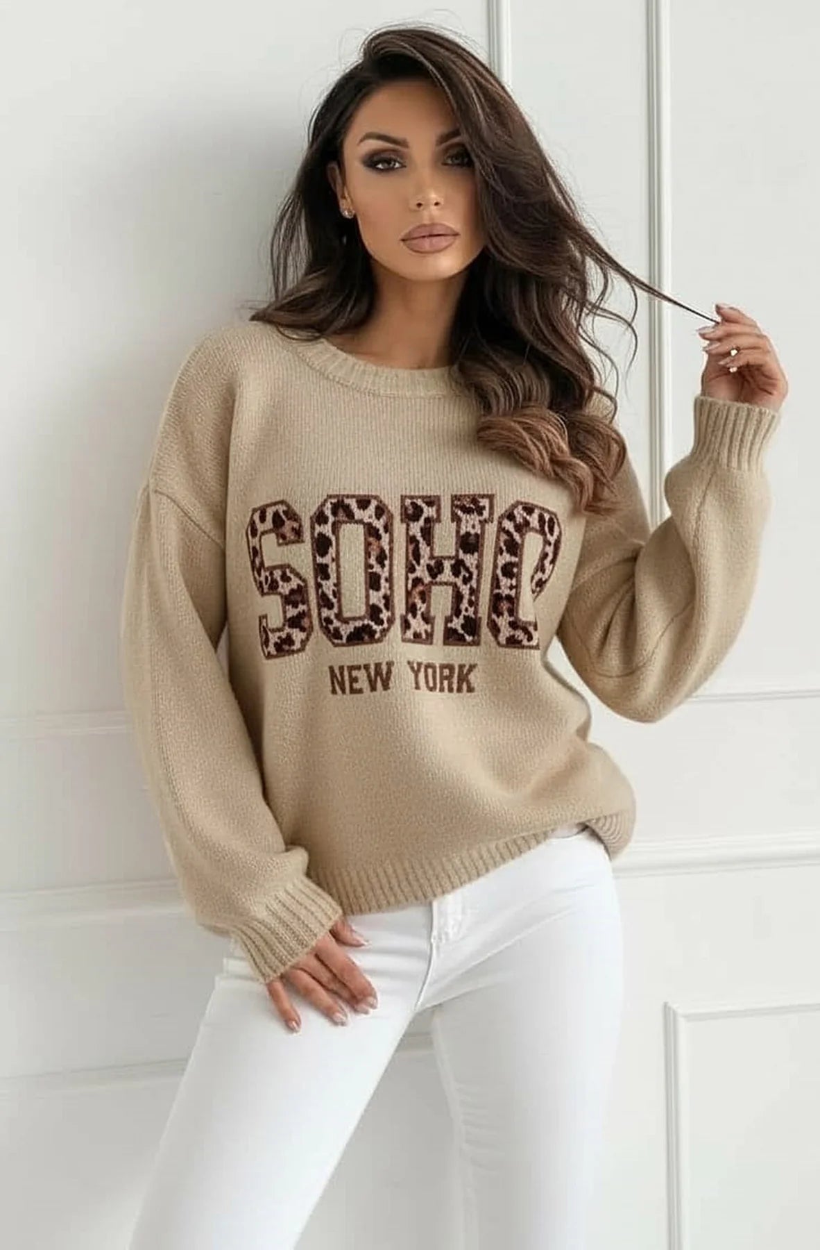 Nixi channels iconic SOHO NY vibes, featuring a bold animal graphic slogan that instantly elevates everyday knitwear into a standout boutique piece.