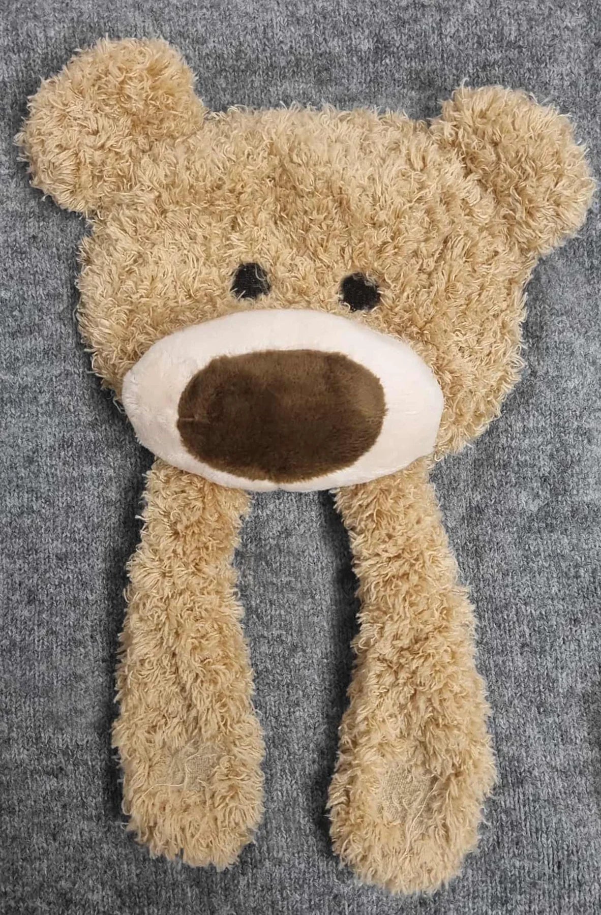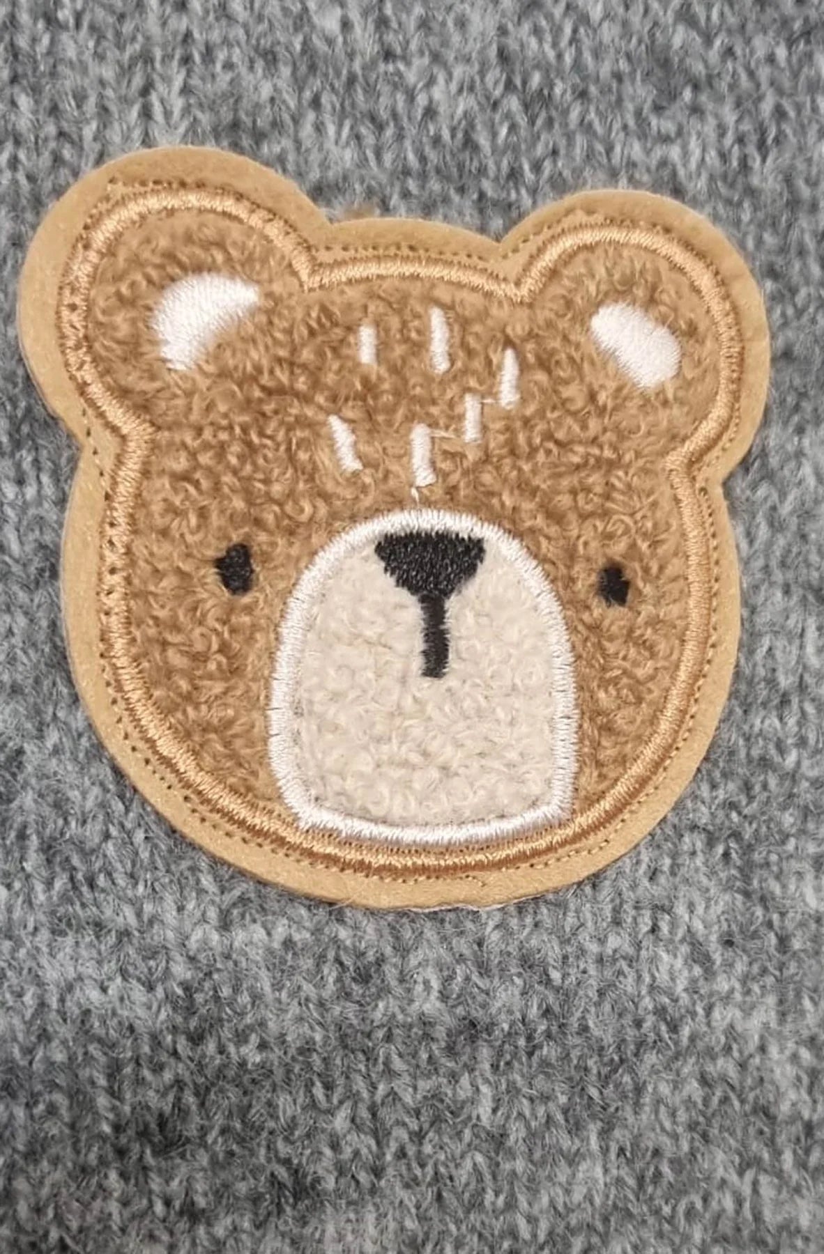 🧸 Signature teddy bear appliqué with playful contrast buttons