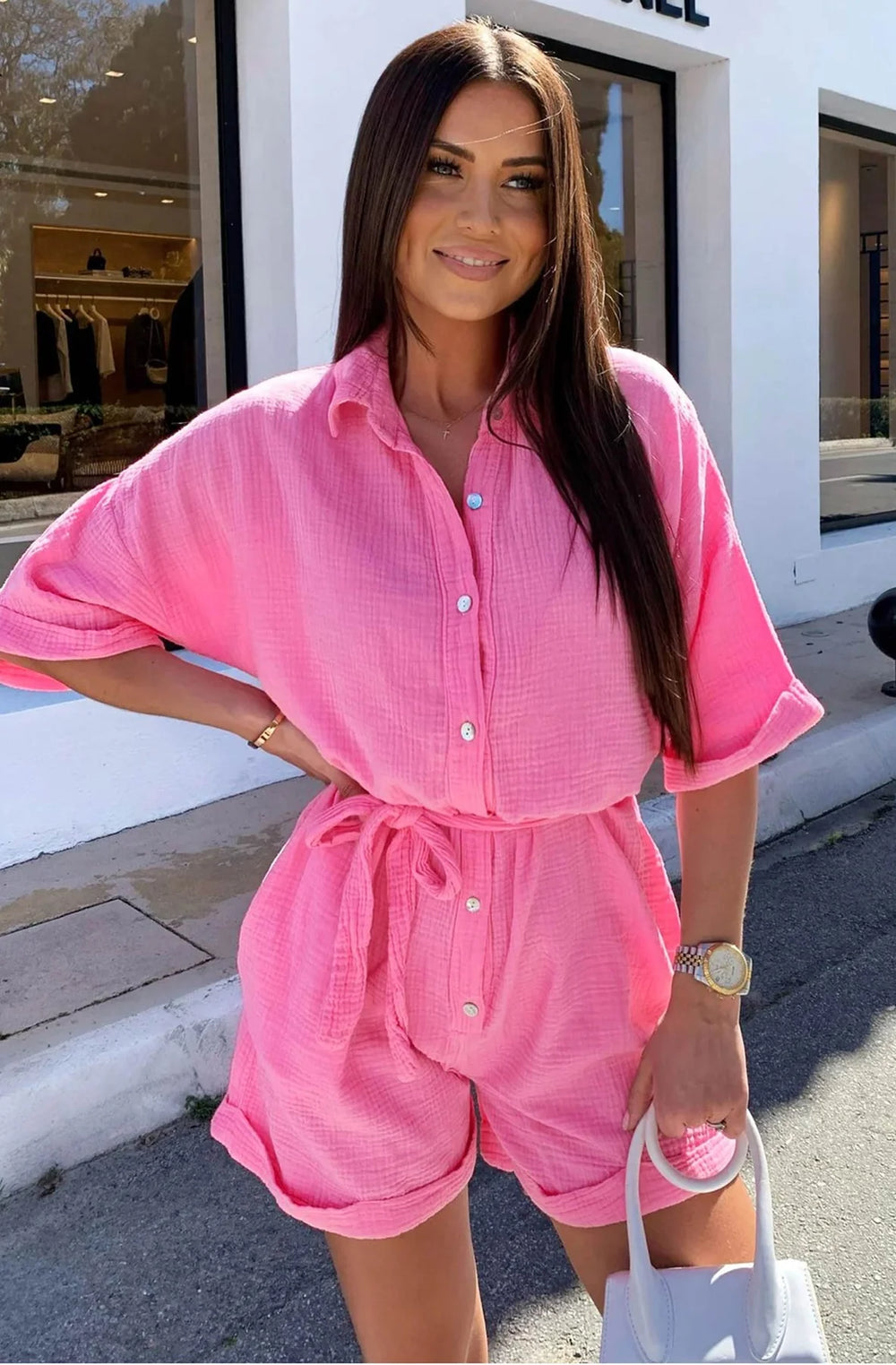 Meet your new go-to outfit for effortless style and comfort – the Sallie Playsuit! Crafted in Italy from 100% breathable Cotton gauze, this lightweight beauty is perfect for warm days or layering in between seasons.
